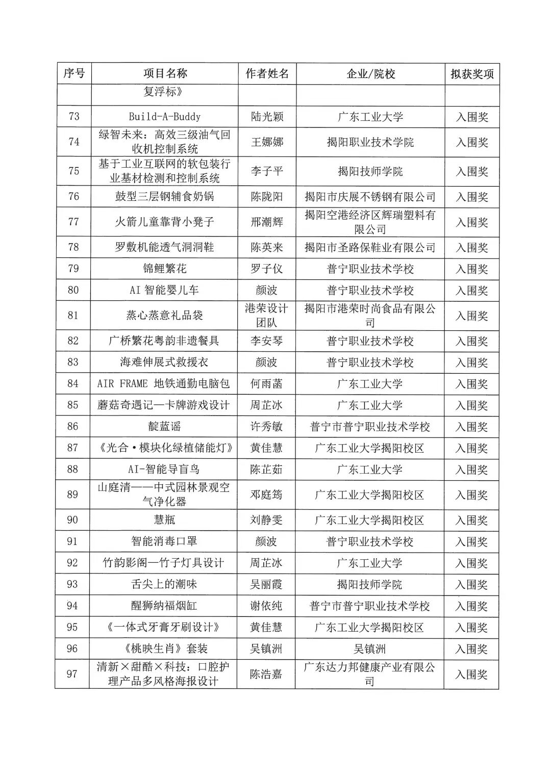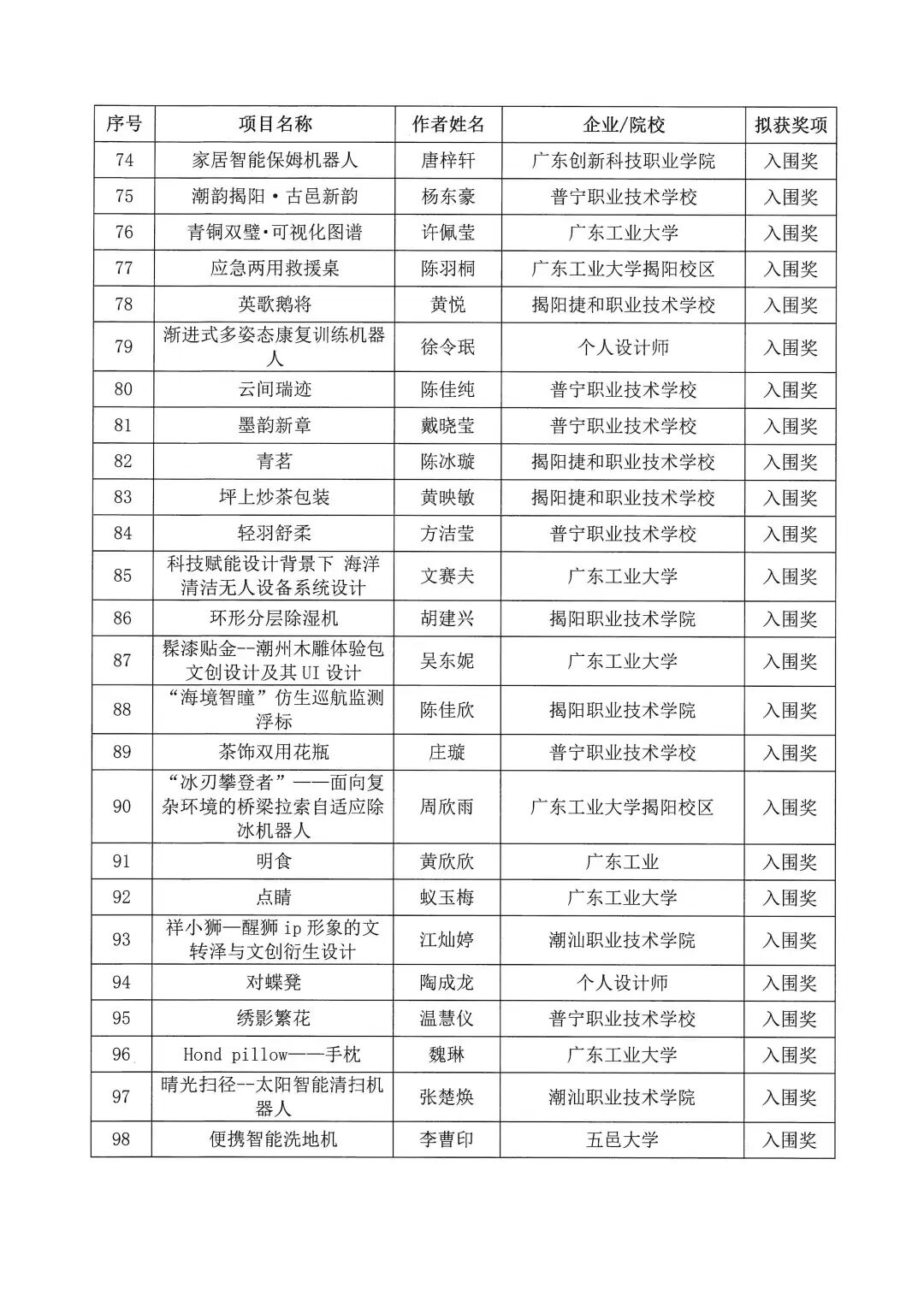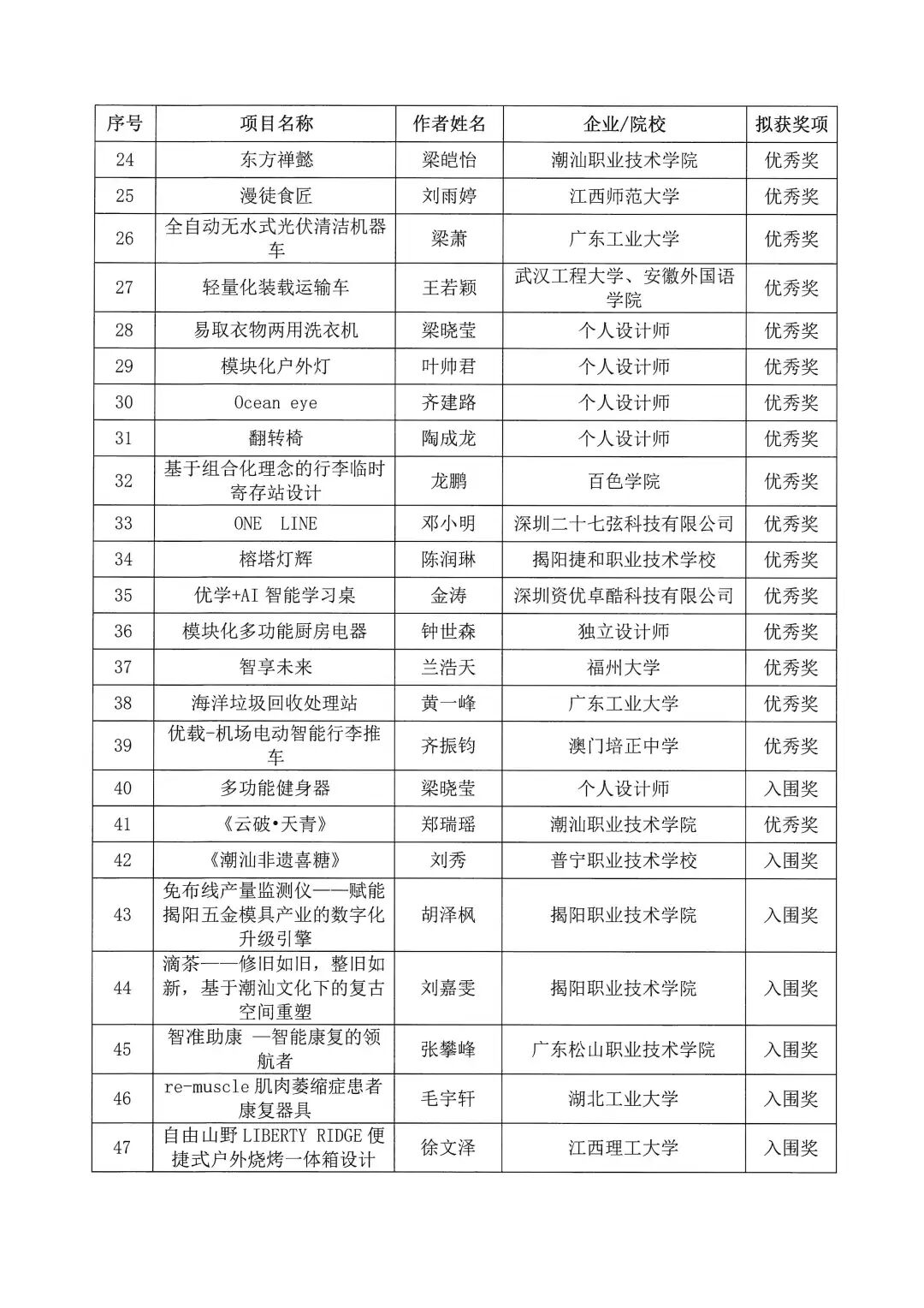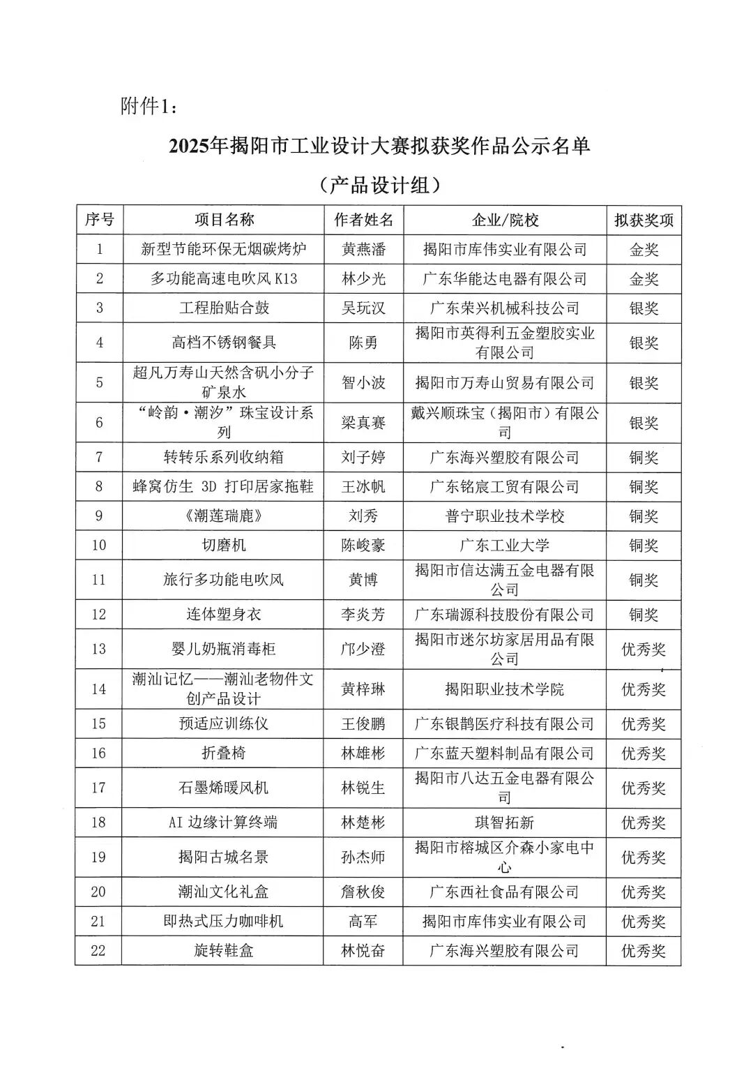 2025年揭阳市工业设计大赛拟获奖作品名单公示