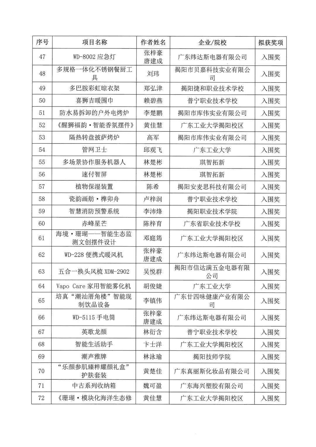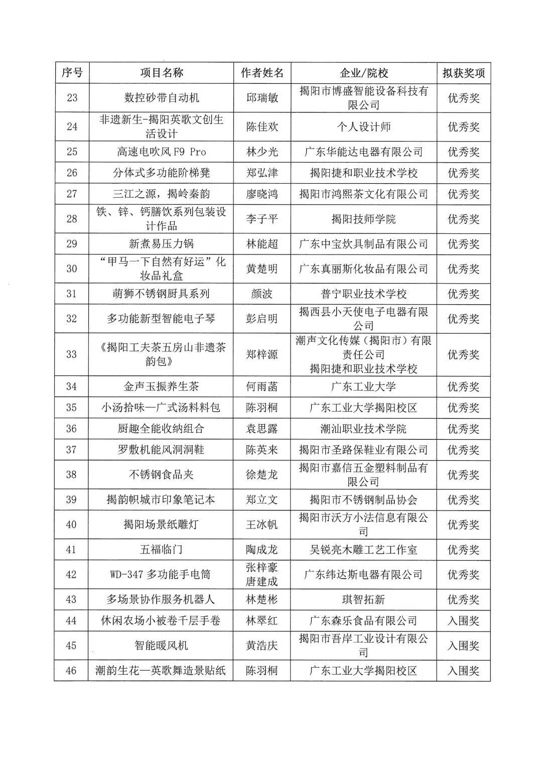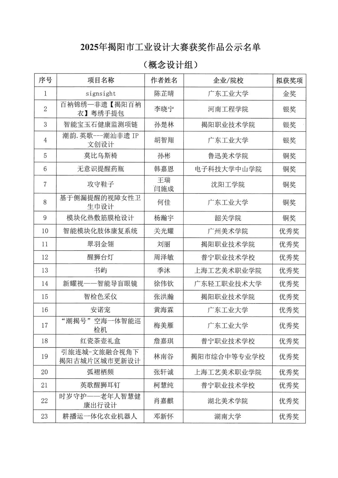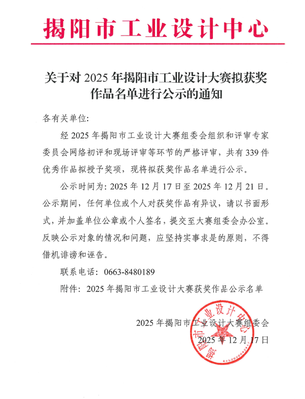 2025年揭阳市工业设计大赛拟获奖作品名单公示